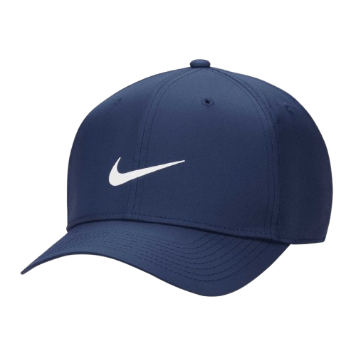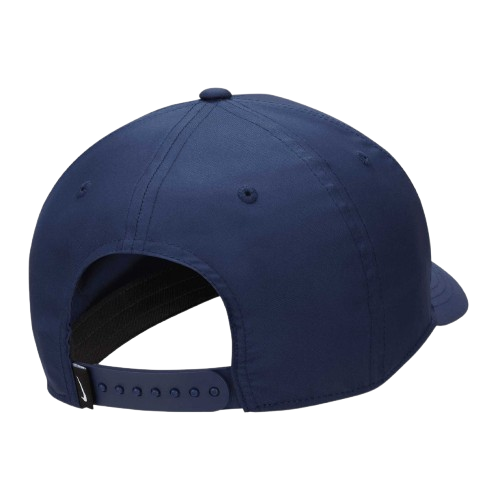 Swoosh bordado en contraste blanco sobre fondo Navy para un acabado deportivo y distintivo.