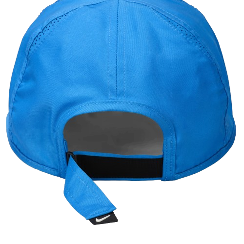 Swoosh bordado en contraste blanco sobre fondo Navy para un acabado deportivo y distintivo.