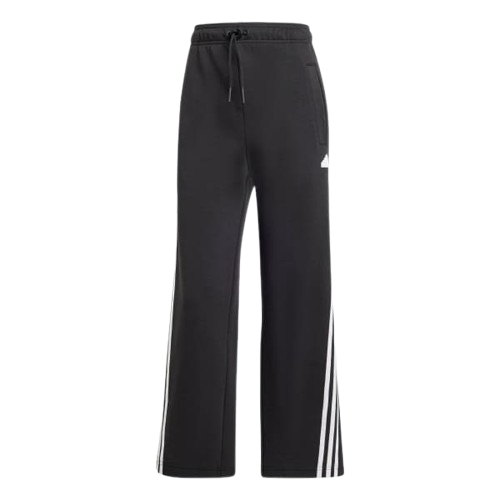 Las tres franjas laterales blancas de adidas, su sello icónico, contrastan con el negro del pantalón .