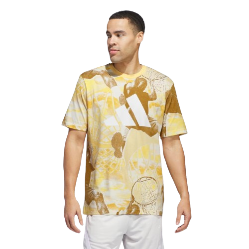 Fabricado en tejido de felpa suave o mezcla de algodón/poliéster (como muchas tees casuales) — no oficial, no hay ficha técnica clara que confirme tecnologías como AEROREADY o Climalite.