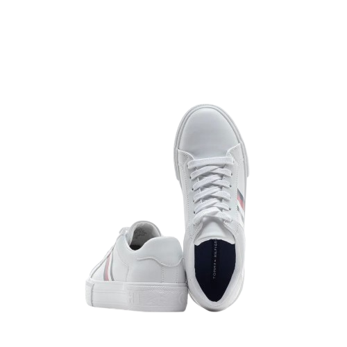 Las TWBELVIE-140 WHITE son unas zapatillas casuales de dama de Tommy Hilfiger en color blanco, con diseño deportivo y moderno, perfectas para quienes buscan comodidad y estilo versátil para el día a día.